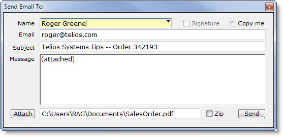 Contacts, Email, Print, Sales Order