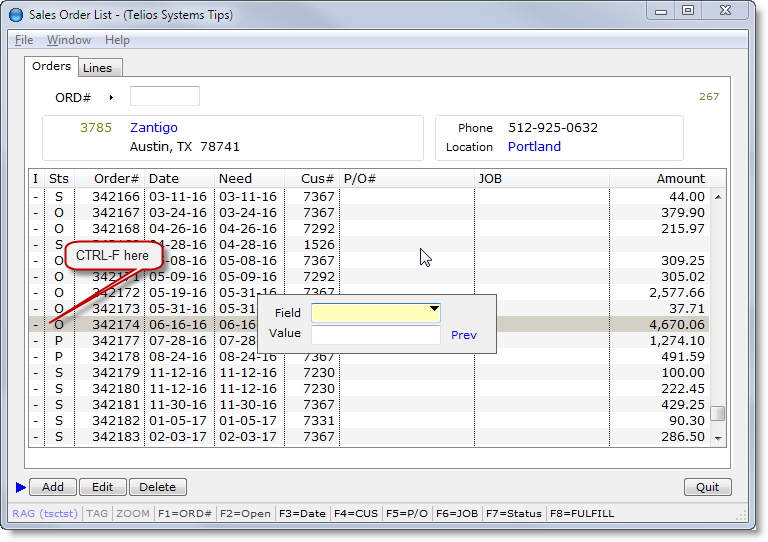 So, most of the time, you will just use CTRL-F and CTRL-G on the list. Pressing CTRL-F will popup a dialog: