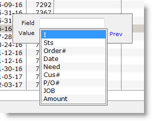 The first field labeled Field tells the program the column that holds the data your are trying to find. The arrow popup will list all the column names: