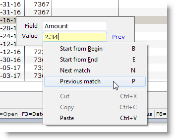 The third piece of data displays in blue to the right of the Value field – in this case, Prev. This tells the program where to start the search. The options are on the context menu (right-click or CTRL + SHIFT + F10):
