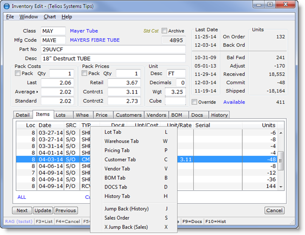 Many of the records are related to one another. A Sales Order produces Shipping Orders, which produces Accounts Receivable Invoices. On the Sales Order there are line items which draw stock from Inventory, produce Make Orders, items from Purchase Orders.