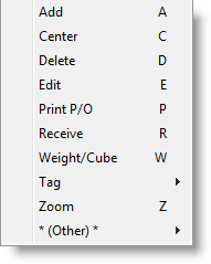 The context menu will list all the one character actions that are available for the current program. Press M or right-click to display the context menu: