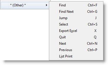 - Next / Previous – the List window keeps a running history of records edited. Use CTRL-N and CTRL-P to trace back and forth between recently edited records.