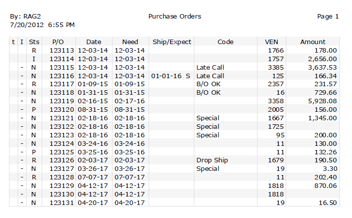 Note: Only the rows currently in the display will be sorted using this method. If you need more records, PAGE-UP or PAGE-DOWN to increase the number of records in the current display. Then click on the column header to sort.