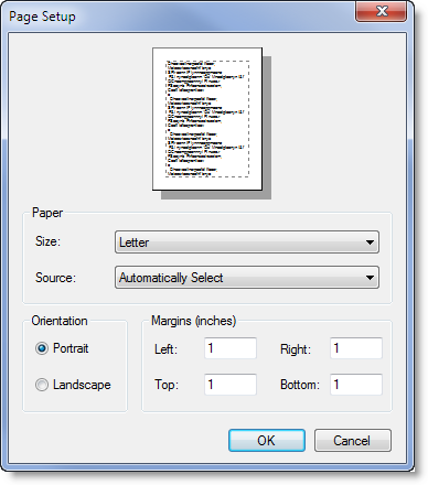 - List Print – prints a list of the records currently in the display index. That is the number in the upper right hand corner of the window. The program will open the Page Setup and Print dialogs: