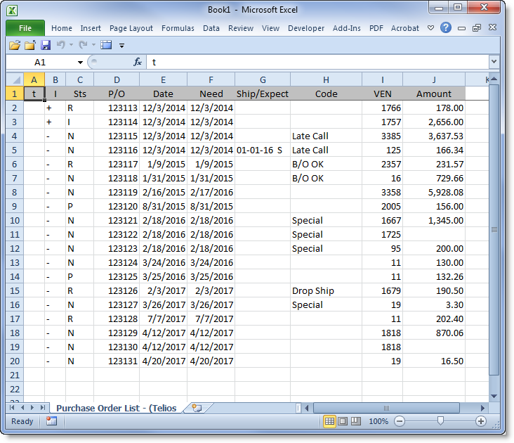 - Export Excel – If Excel© is installed on the PC, the current list of records will export to a live instance of the spreadsheet.