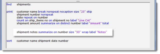 The shipment notes field is text, so the on arguments just act as a filter. The statement could also use repeat on: