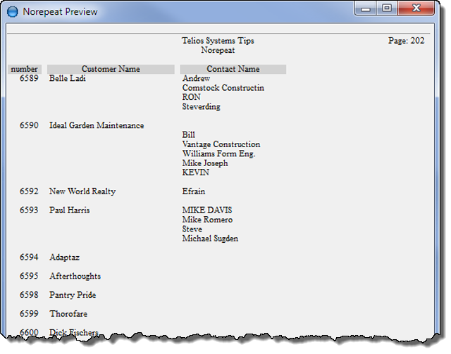 1. norepeat — skips print of duplicate value