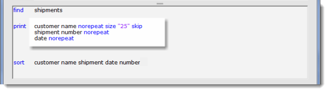 SQL returns every field on every row selected on a query. You often don’t want every field to print on every row. So… we have this reserved word.