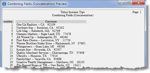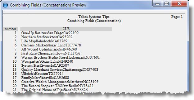 The combined fields we’re using are customer name, city, state and zip. If we were to list the combined fields like this: