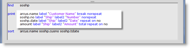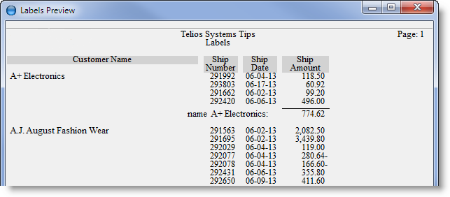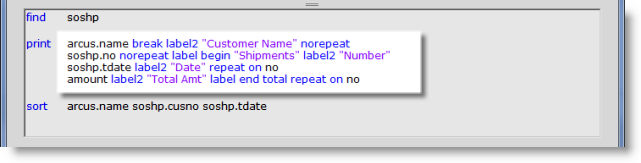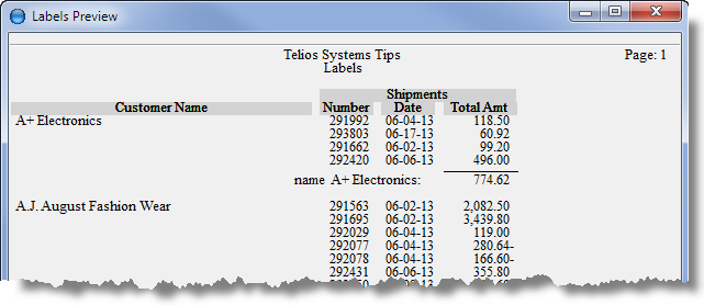 To do this we add begin to the label word followed by the caption “Shipments”. Then on the last column that we want to include, enter label end (no caption):
