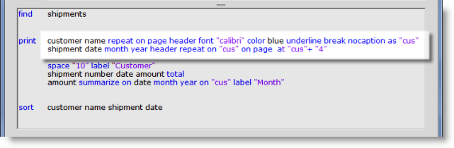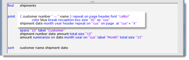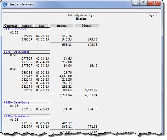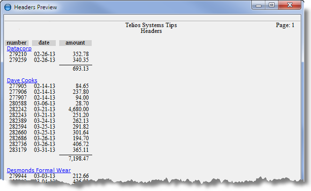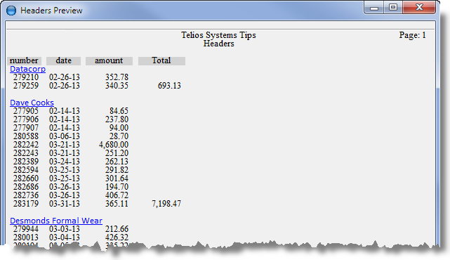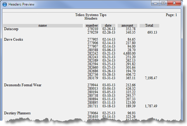A Quiz header is a field that is printed, but not defined as a column. The default print position for headers is at the left margin of the report.