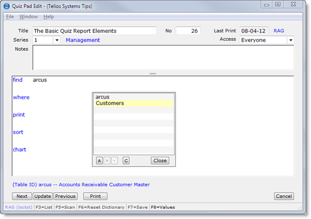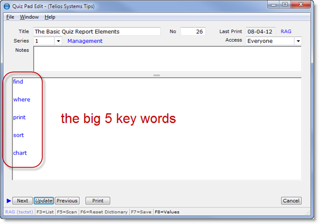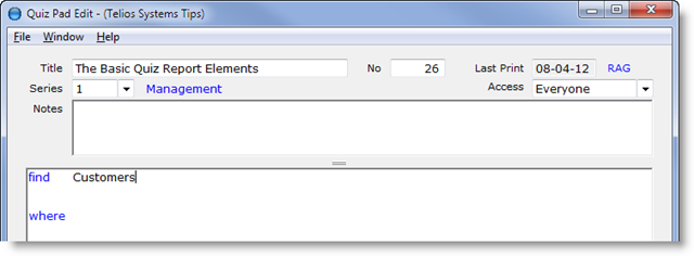 Not to offend the technological professionals –  but Quiz is the report writer for the non-IT elect.