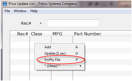 The main list screen displays any existing price update records and provides buttons to Load, Auto Price, and Update Inventory. The contextual menu on the list of records provides an option to clear the update record database, as these records are essentially “throw away” once inventory has been updated.